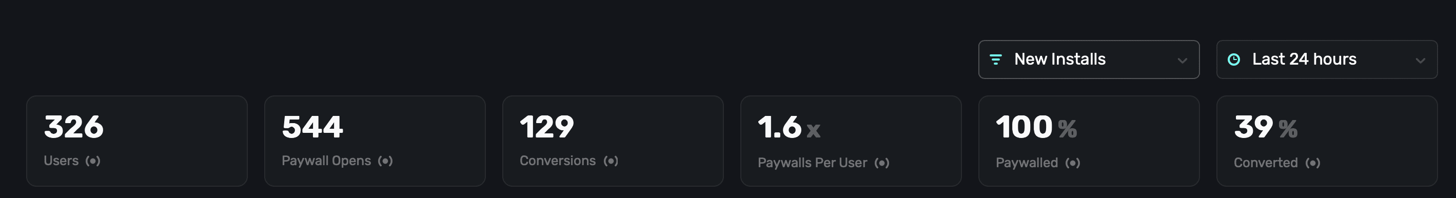 | Paywalled | The percentage of how many users were shown a paywall in total. |